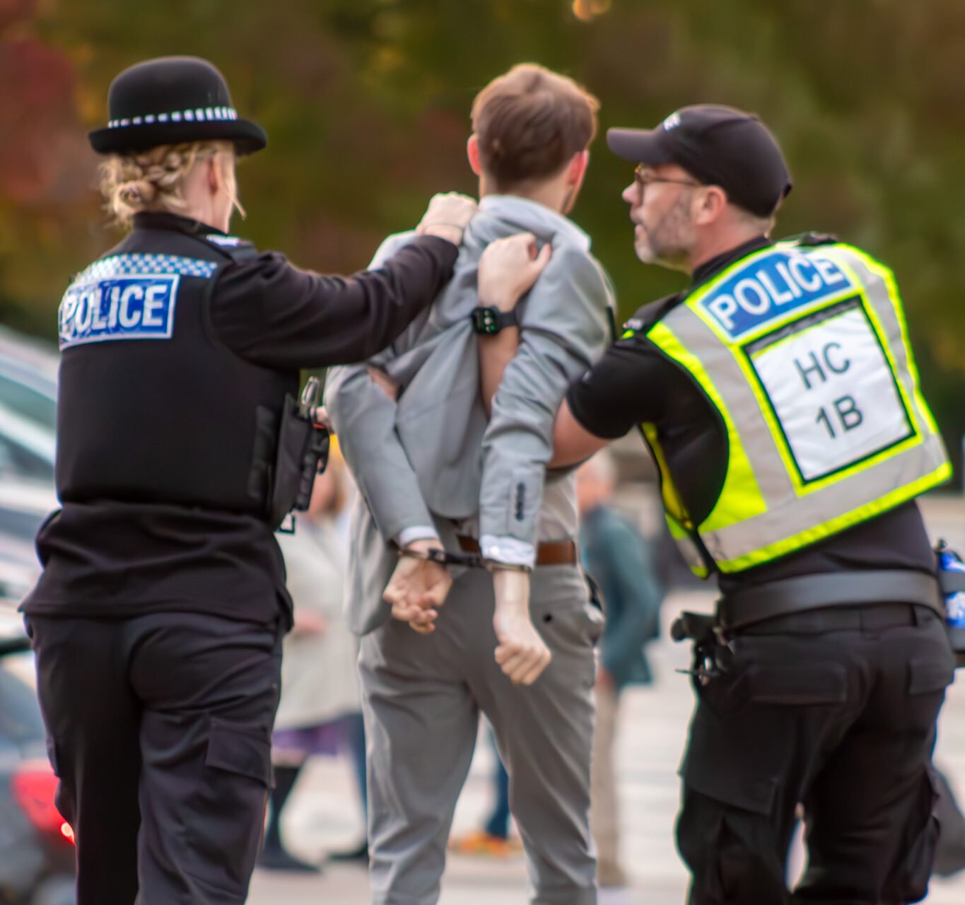 Tensions between the two sides escalated throughout the evening. Witnesses said a man stood amongst the anti-arms protest attempted to provoke pro-UK supporters several times before lunging at one of them as the event drew to a close. Hampshire Police quickly intervened, arresting the man and escorting him from the scene to be taken away in a Police van.