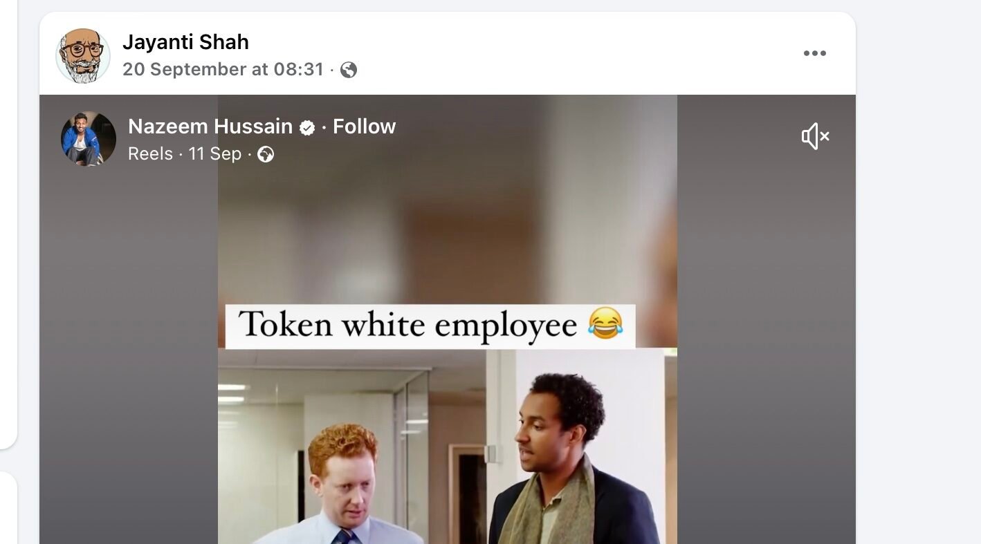 Mr. Shah shared a video online entitled “Token White Employee” by Naseem Hussein, a fringe comedian in Australia. Hussein’s work draws on his Muslim background and often treads a fine line between parody and polemic, drawing both praise and criticism but seemingly divisive.